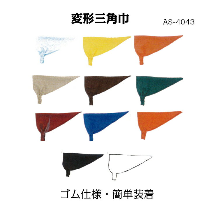 三角巾 ゴム 変形三角巾 ゴム仕様 ゴム入り フリーサイズ バンダナ 和帽子 カラフル カラー 厨房 飲食店 レストラン カフェ 和食屋 洋食屋 イベント 学校 幼稚園 保育園 調理実習 和菓子屋 うどん屋 日本料理 厨房 ユニフォーム 制服 業務用 簡単装着 デリバリ (185 AS-4043)