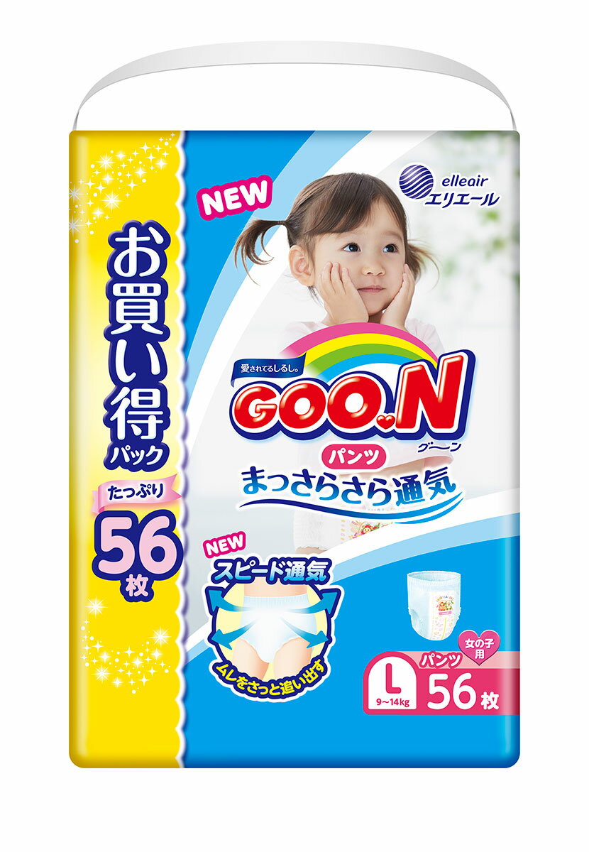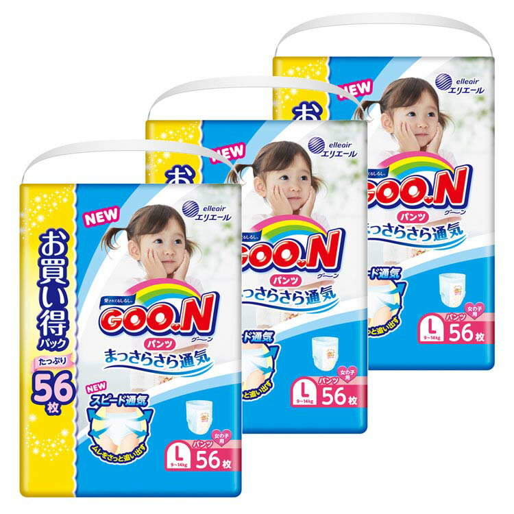 グーン おむつ パンツ L(9〜14kg)(56枚入) 女の子 まっさらさら通気 エリエール (GOO.N)【56枚*3個セット(1ケース)】