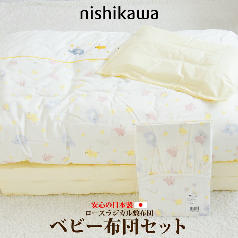 京都西川 ローズベビー組ふとん ANP-P ふんわり やわらか 安眠 ベビー寝具 敷きふとん 掛けふとん 掛けカバー 敷ふとんシーツ まくら ピロケース ペア ラジカル 7点セット (メーカー直送、代金引き不可)